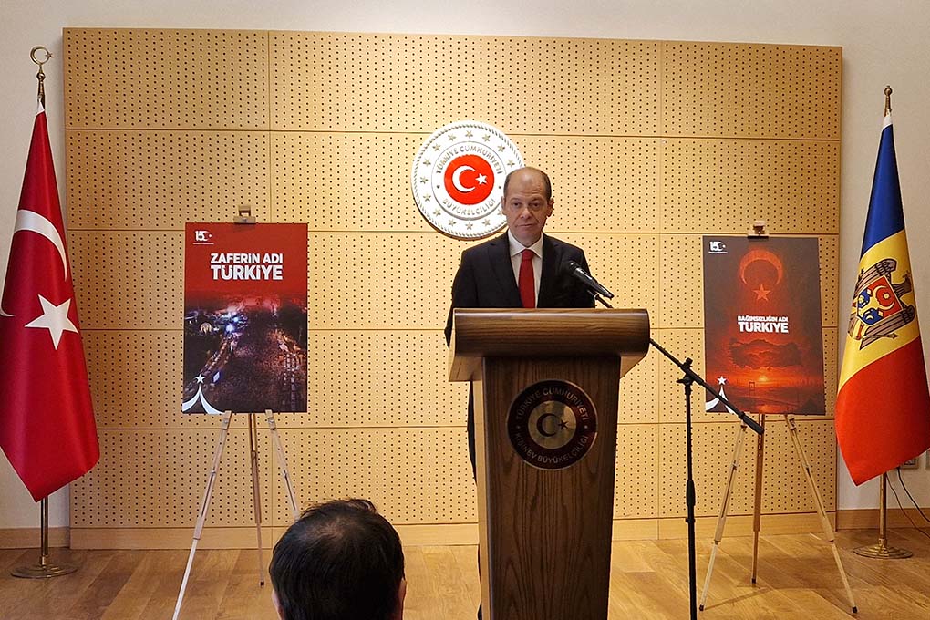 Türkiye Kişinev Büükelçiliindä 15 Temmuz “Demokratiya hem Milli Birlik Günü”nün bakılması sırasına, başta Türkiye Kişinev Büükelçisi Uygar Mustafa SERTEL hem TC Kişinev Büükelçiliin diplomatları, Türk İşbirlii hem Koordinaţiya Agenstvosu (TİKA) Kişinev ofisin koordinatoru hem zaametçileri, akademik hem yazıcı Todur ZANET hem başka insannar katıldılar.