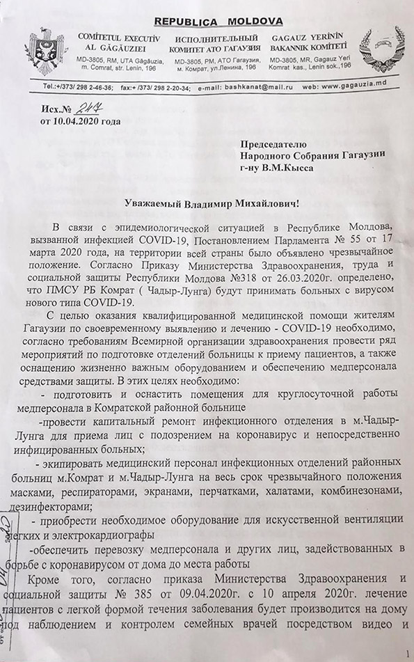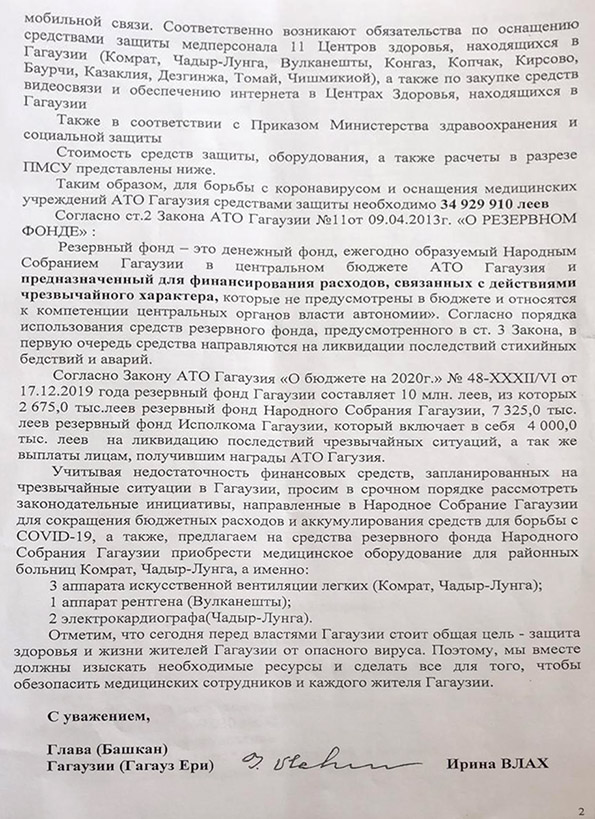 Redakțiyamızın elinä geçti Gagauziya Başkanı İrina VLAHın Gagauziya Halk Topluşuna bu konuylan ilgili kiyadı hem smeta detalleri, neredä Canabisi teklif eder GHT kabletsin COVİD-19 salgınına karşı koymak için 34 milion 929 bin 910 leylik smetayı.