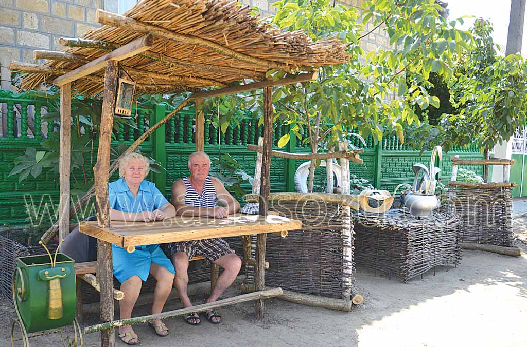 Georgiy Nikolayeviç hem Efrosiniya Dimitriyevna 15 yıla yakın işledilär gurbettä – Rusiyada. Şindi çıktılar pensiyaya, da heptän döndülär ana tarafına, paalı küülerinä. Aylak durmamaa hem küülülärlän küüyün musaafirlerini sevindirmää deyni, bu gözäl çift evlerinin evin yanında bu dinnenmäk köşesini yapmaa.
