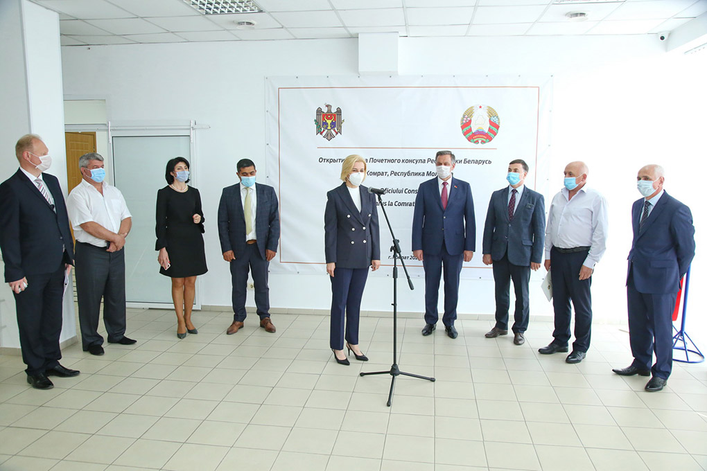 Belarusiyanın şannı konsulluun ofisinin açılışında pay aldılar Gagauziya Başkanı İrina VLAH, Gagauziya Halk Topluşu Başı Vladimir KISSA, GHT deputatları hem başkaları.