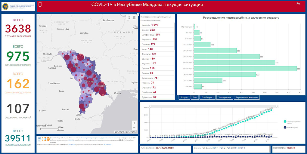 29.04.2020. Moldova saalık ministerliin açıklamasına görä, bu saatta Moldovada COVID-19 durumu bölä: ulaşannarın sayısı – 3638; ölennerin sayısı – 107; alışannarın sayısı – 975.