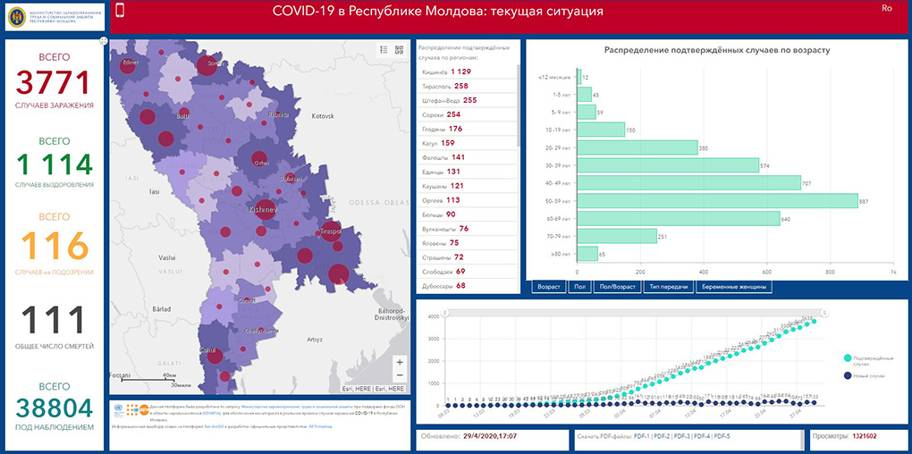 30.04.2020. Moldova saalık ministerliin açıklamasına görä, bu saatta Moldovada COVID-19 durumu bölä: ulaşannarın sayısı – 3771; ölennerin sayısı – 111; alışannarın sayısı – 1114.