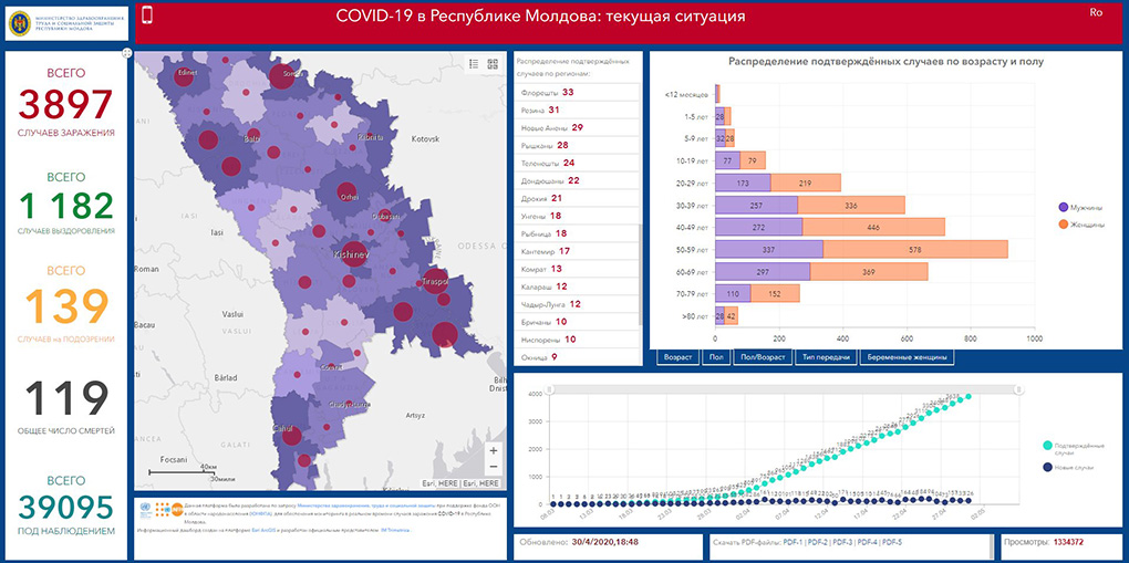 01.05.2020. Moldova saalık ministerliin açıklamasına görä, bu saatta Moldovada COVID-19 durumu bölä: ulaşannarın sayısı – 3897; ölennerin sayısı – 119; alışannarın sayısı – 1182.