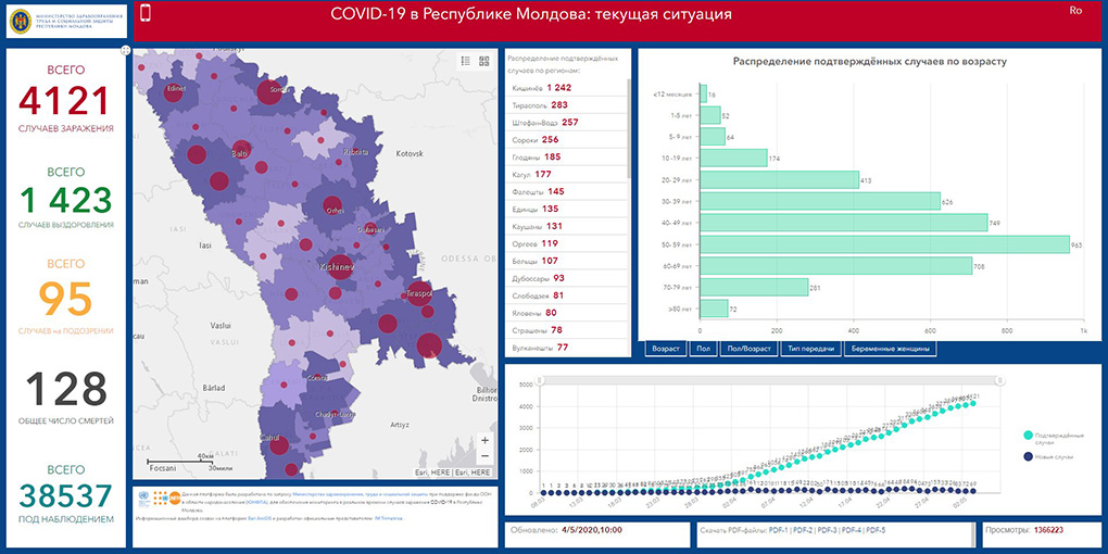 04.05.2020. Moldova saalık ministerliin açıklamasına görä, bu saatta Moldovada COVID-19 durumu bölä: ulaşannarın sayısı – 4121; ölennerin sayısı – 128; alışannarın sayısı – 1423.