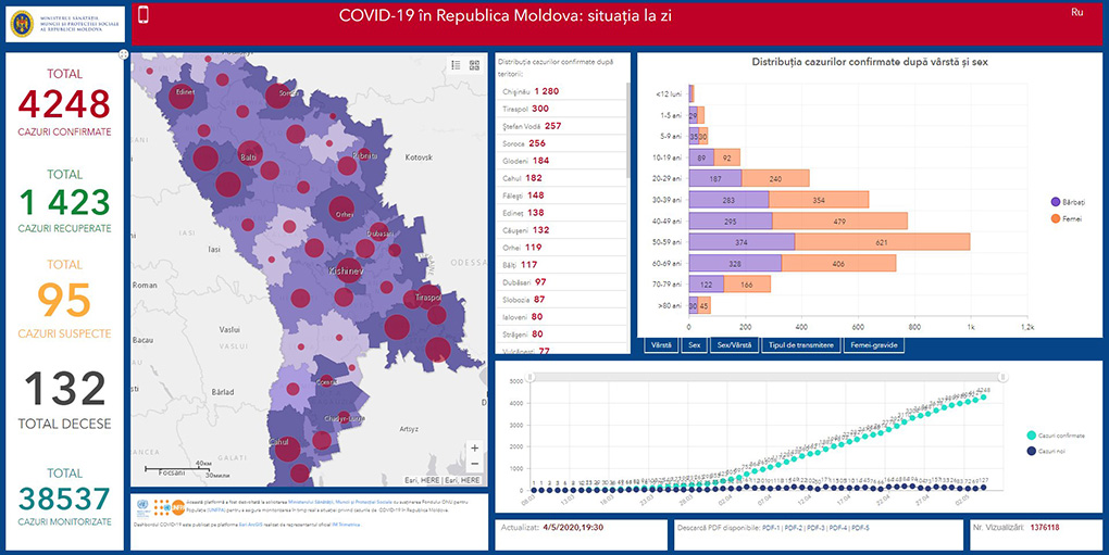 05.05.2020. Moldova saalık ministerliin açıklamasına görä, bu saatta Moldovada COVID-19 durumu bölä: ulaşannarın sayısı – 4248; ölennerin sayısı – 132; alışannarın sayısı – 1423.