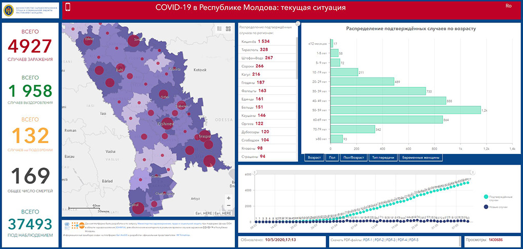 11.05.2020. Bu saatta Moldovada COVID-19 durumu bölä: ulaşannarın sayısı – 4927; ölennerin sayısı – 169; alışannarın sayısı – 1958.