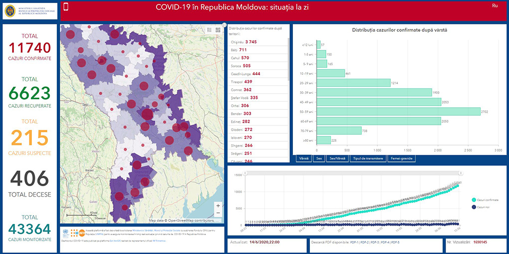15.06.2020. Bu saatta Moldovada COVID-19 durumu bölä: ulaşannarın sayısı – 11740; ölennerin sayısı – 406; alışannarın sayısı – 6623.
