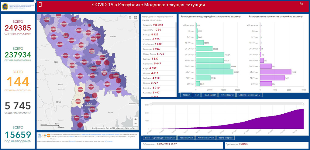Şindi Moldovada COVID-19 durumu bölä: ulaşannar – 253567; ölennär – 6006; alışannar – 244487.