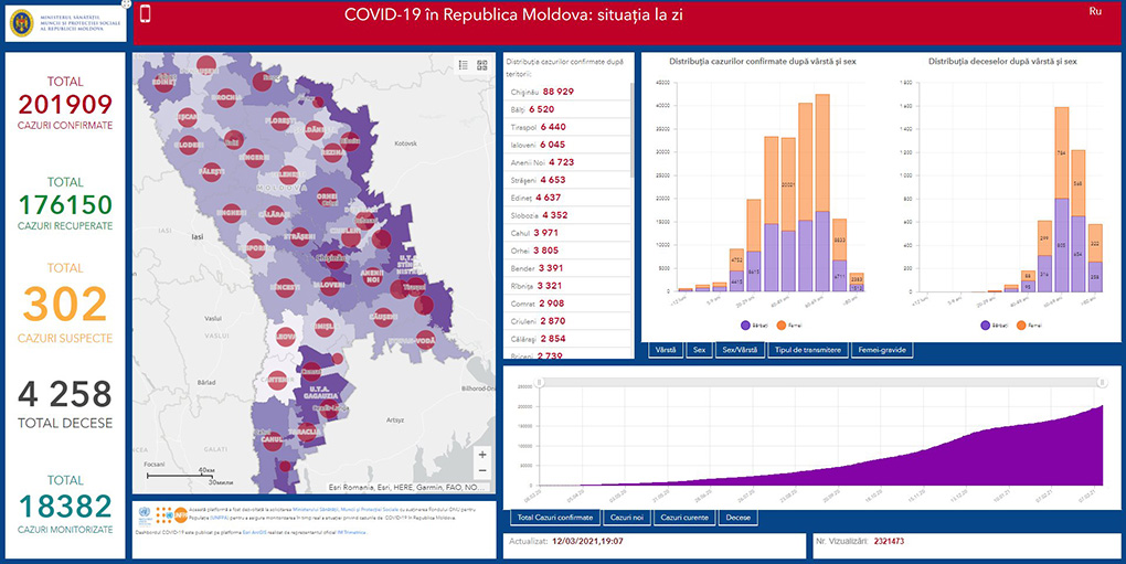 13.03.2021. Bu saatta Moldovada COVID-19 durumu bölä: ulaşannar – 201909; ölennär – 4258; alışannar – 176150.