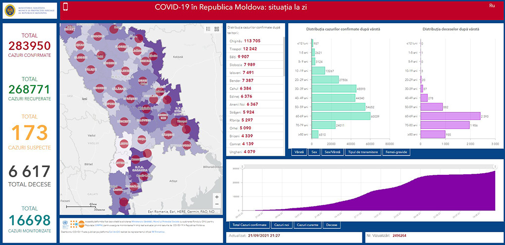 22.09.2021. Moldovada COVID-19 durumu bölä: ulaşannar – 283950; ölennär – 6617; alışannar – 268771.