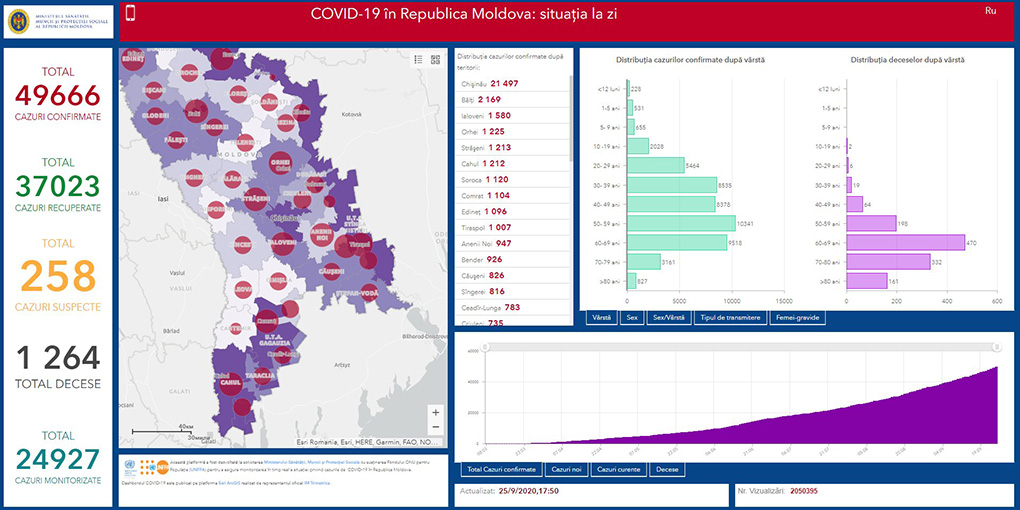 25.09.2020. Bu saatta Moldovada COVID-19 durumu bölä: ulaşannar – 49666; ölennär – 1264; alışannar – 37023.