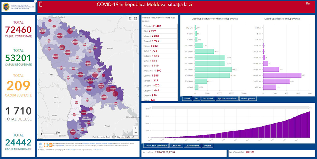 28.10.2020. Bu saatta Moldovada COVID-19 durumu bölä: ulaşannar – 72460; ölennär – 1710; alışannar – 53201.