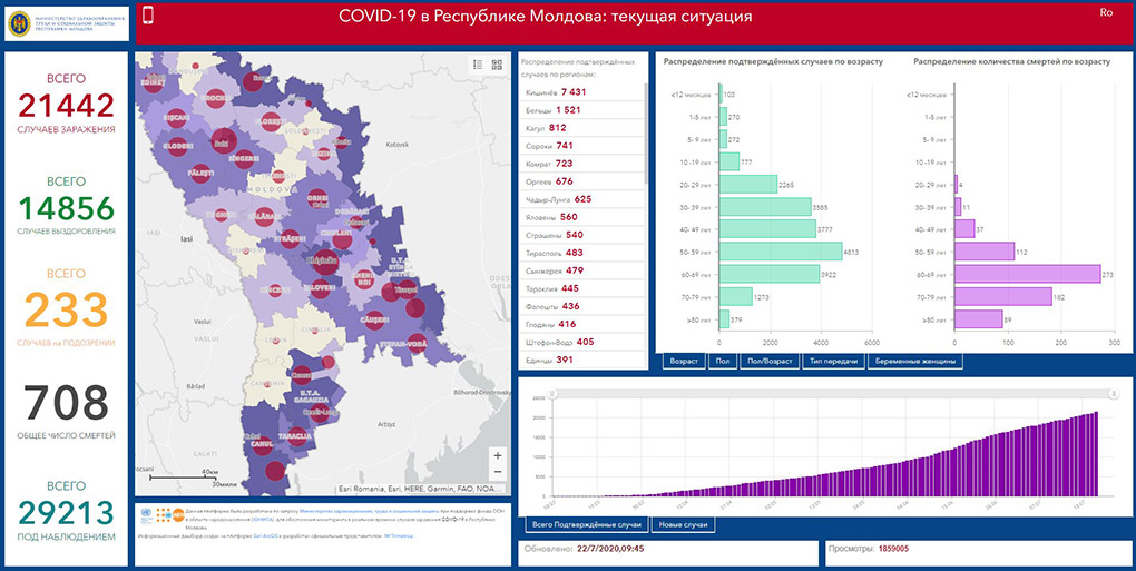 22.07.2020. Bu saatta Moldovada COVID-19 durumu bölä: ulaşannar – 21442; ölennär – 708; alışannar – 14856.