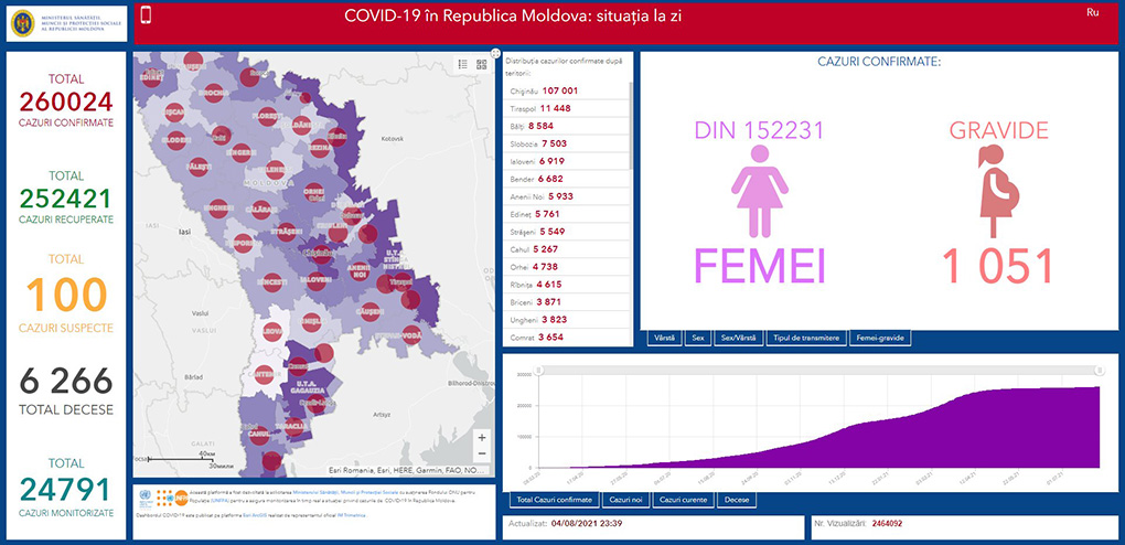 05.08.2021 gününä görä Moldovada COVID-19 durumu bölä: ulaşannar – 260024; ölennär – 6 266; alışannar – 252421.
