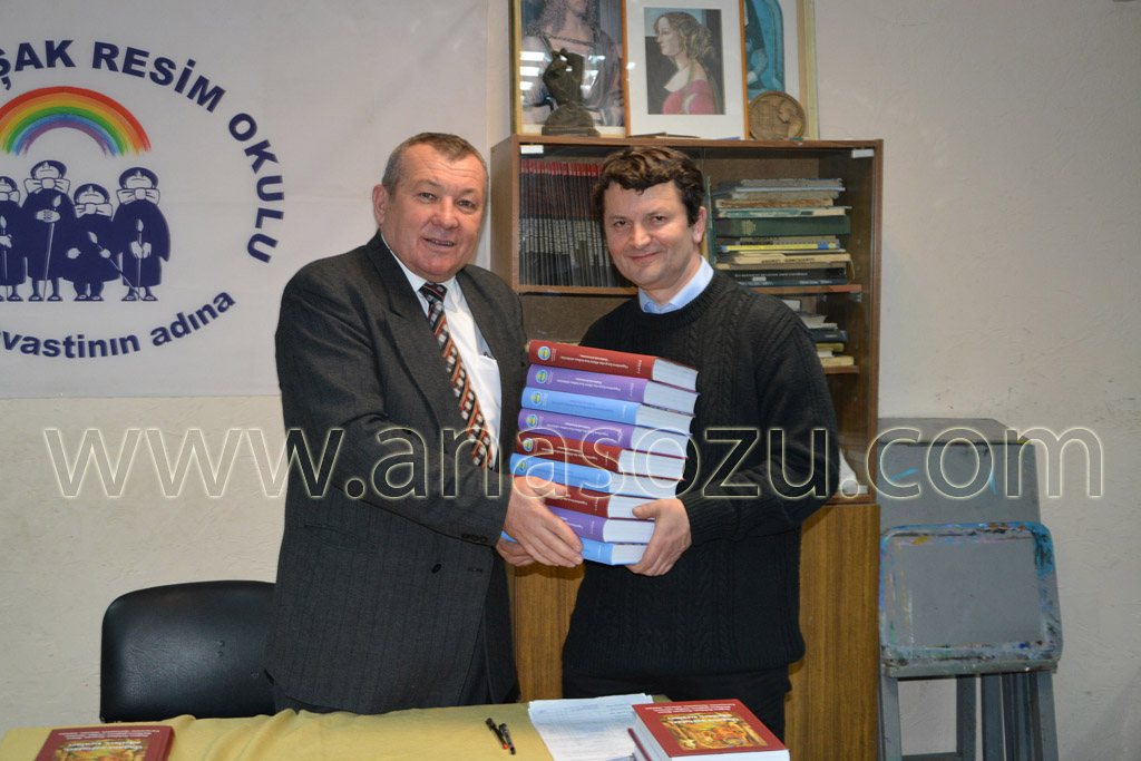 Bu kiyatlar verildi hepsi genç resimcilerä, kimin resimneri girdi takımın kiyatlarına. Baaşlandı 50 bin leyä yakın paasında 57 takım. 3 takım verildi bu resimci şkolasının bibliotekasına da.