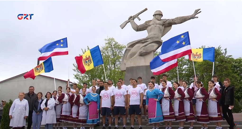 Marafonun sonunda, Tomay küüyün kurtarıcı askerleri pamätniin yanında, marafoncuları gagauz halk oyunnarınnan karşladılar.