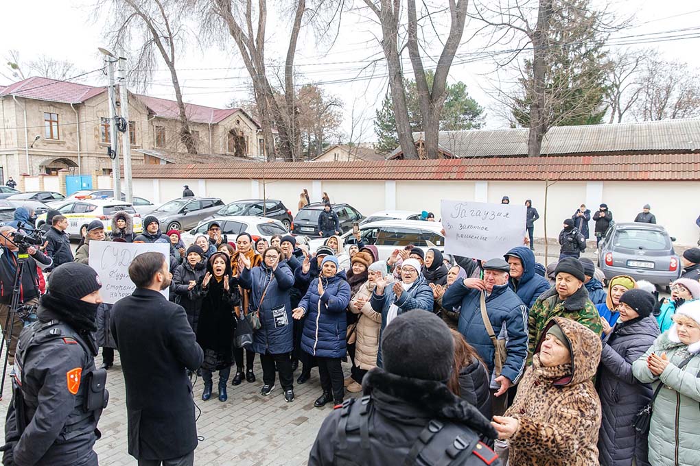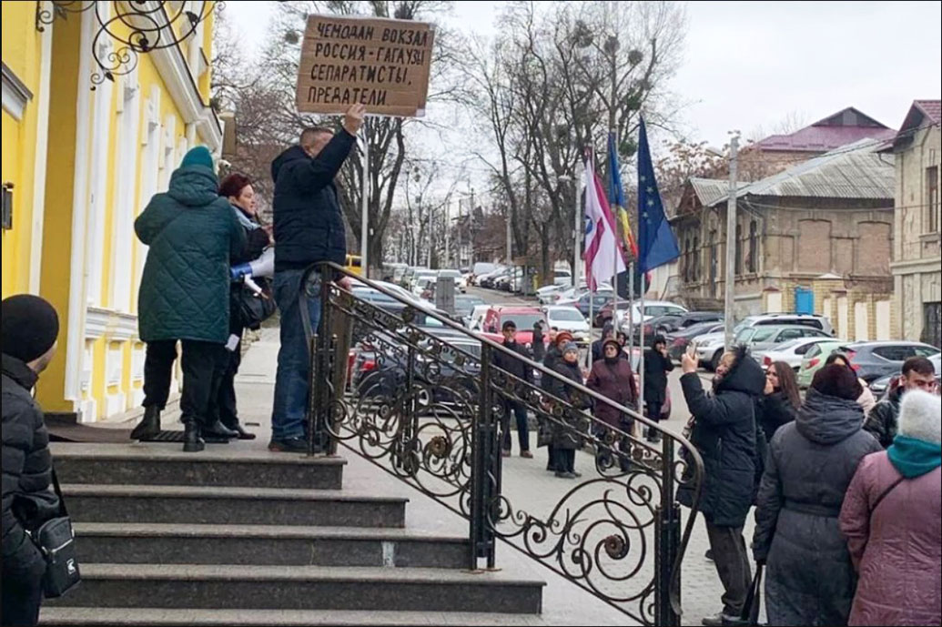 Konstituțiya sudun önünä gelän barışçı gagauzların raatlı mitingını, önä çıkan tülü azarlamaklarlan molduvalılar, savaştılar darma-daan etmää. Polițiya da onnar bişey demedi, ama gagauz mitingçılarına ataka yapıp, dayttırdı oonarı.