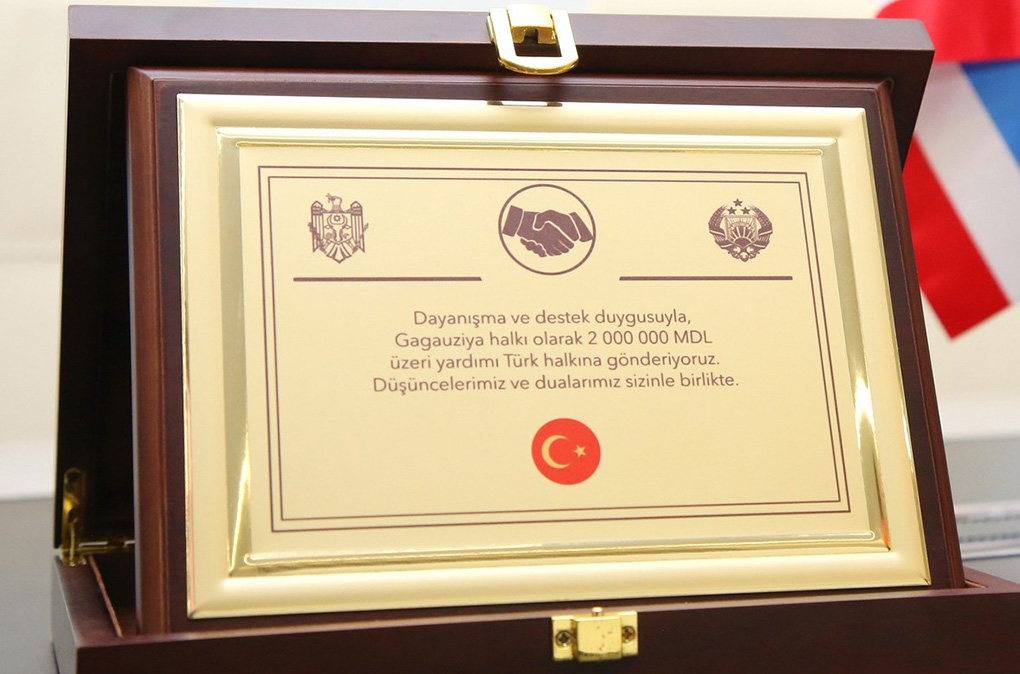 Küçük ayın (fevral) 6-da Türkiyedä biri-biri ardına olan er tepremesindän zarar görän Türk halkına Gagauziyada yardım için toplanan 2 milion ley para yardımını, Baba Marta ayın 24-dä Türkiye Kişinev Büükelçisi Uygar Mustafa SERTELä verildi.