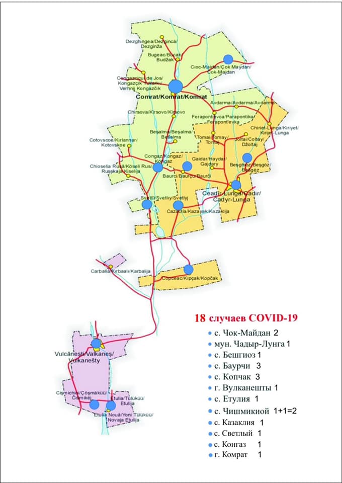 Gagauziya Başkanın açıklamasına görä: Ulaşannarın arasında 9 kişi Çadır rayonundan (Kıpçak –3, Baurçu –3, Çadır –1, Beşgöz – 1, Kazayak –1), 5 kişi Komrat rayonundan (Çok-Maydan –1, Komrat –1, Svetlıy –1), 4 kişi Valkaneş rayonundan (Çeşmäküüyü–2, Ütütlü küüyü –1, Valkaneş –1).