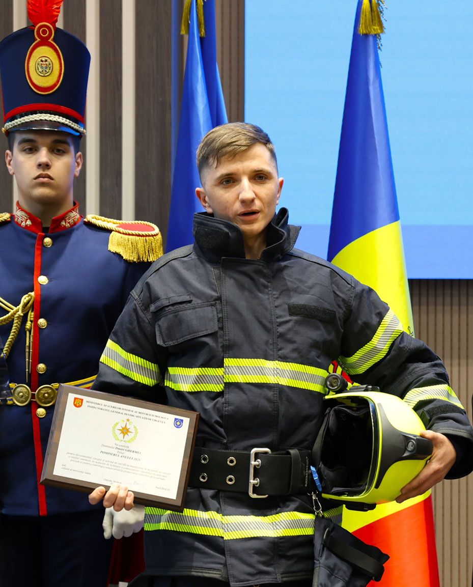 O Galada “2025 yılın yangıncısı” ödülünü kabletti Gagauziyanın Valkaneş kurtarıcı hem yangıncı bölüün üst yangıncısı Dimitriy Olegoviç GERMEK.