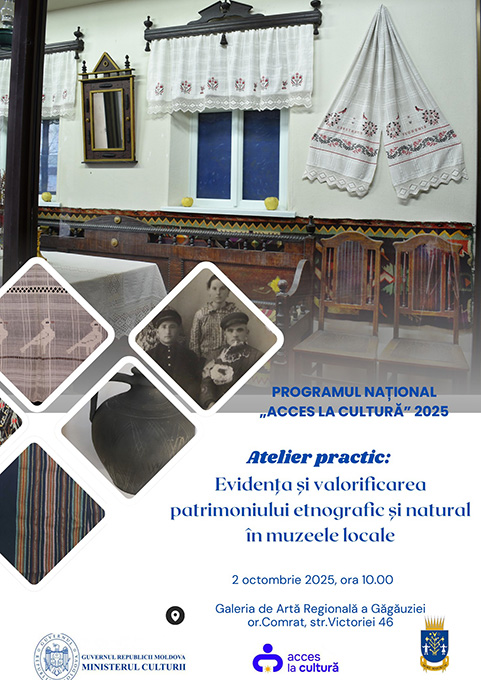 Canavar ayın (oktäbri) 2-dä Gagauziya kultura Upravleniyası, Moldova Respublikasının Etnografiya hem dolaylı tabiat istoriyası Milli muzeyinnän ortaklıkta, Gagauziyanın Regional resim Galereyasında Gagauziya (Gagauz Yeri) muzeycilerinä deyni “Erindeki muzeylerdä etnografiya hem tabiat varlıkların esaba alınması hem paaya koyulması” adlı bir trening seminarı yaptı.