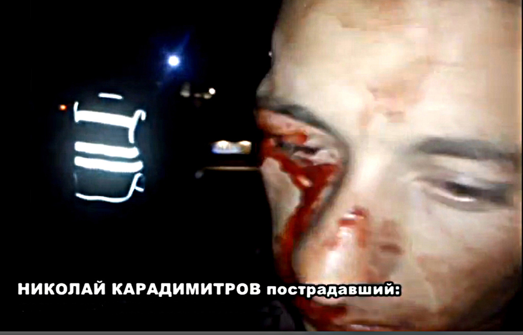 Nikolayın annatmasına görä, poliţiyacı ilktän durgutmuş onu, sora da poliţiya sopasınnan (jezl) urmuş onun kafasına.