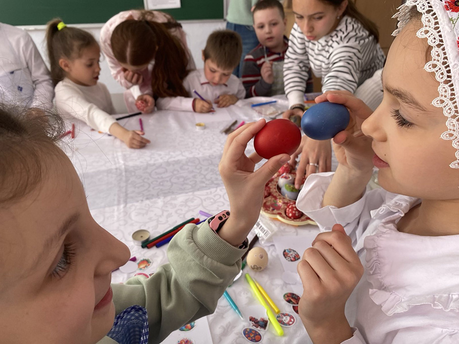 Bu şen hem meraklı urokta üürencilär, “Suvancık”, “Petruşka (Maydanoz otu)” hem “Boyacık” adlı grupalara bölünüp, yımırta boyamasında türlü uurda praktika işleri yaptılar.