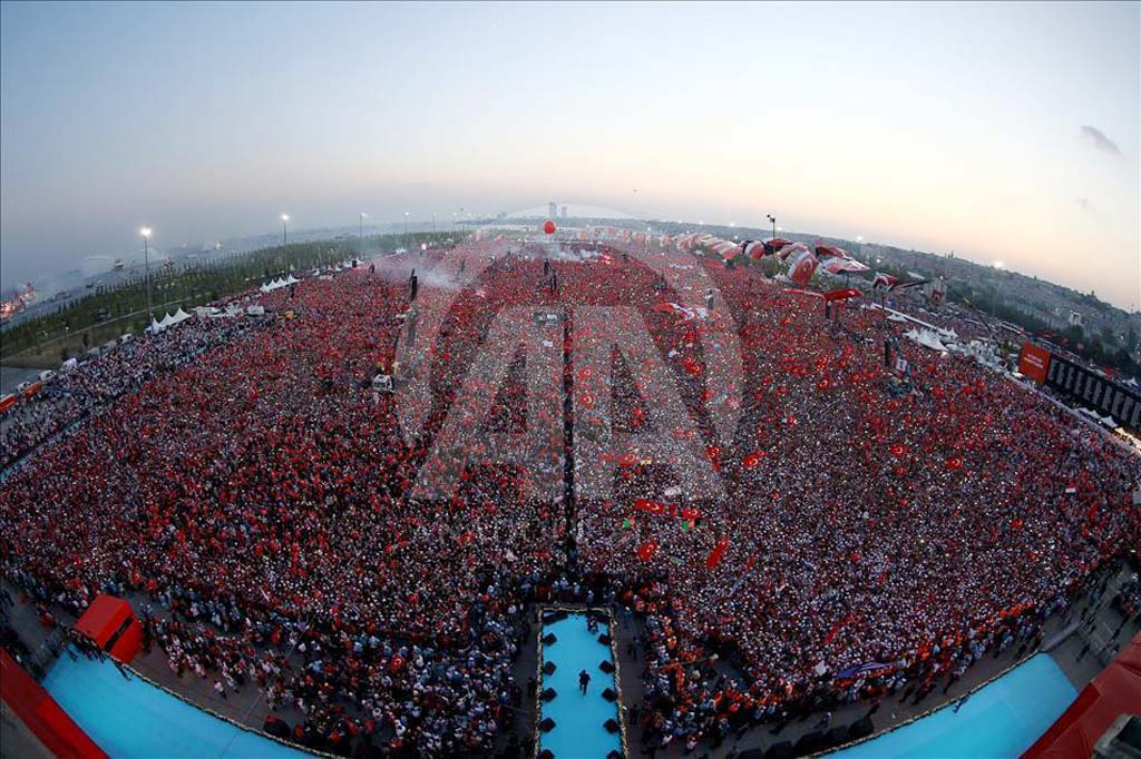 Harman ayın (avgust) 7-dä İstanbulun Yenikapı meydanında “Demokratiya hem Şehitlär Mitingı” geçti. Mitingta Türkiye Respublikasının öndercileri hem yaklaşık 5 milion insan pay aldı, bildirer Türkiyenin Anadolu Agenstvosu.