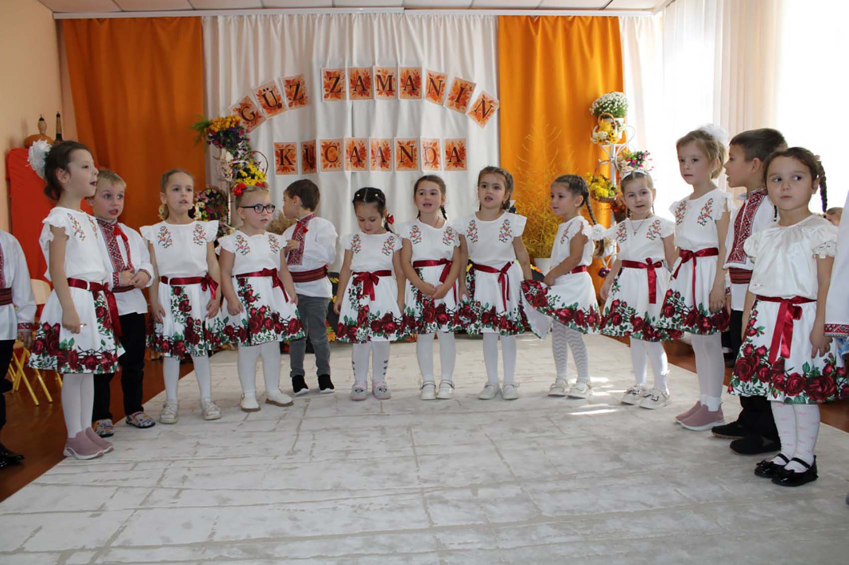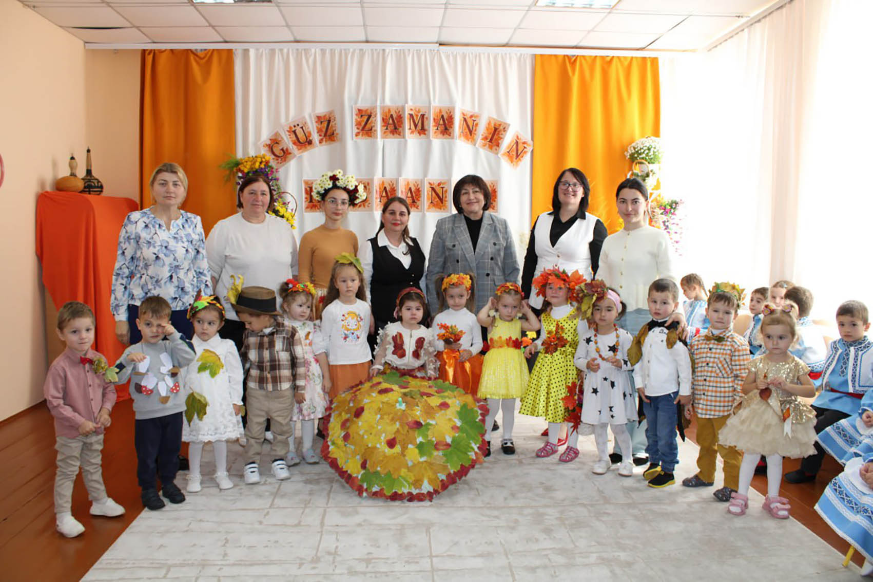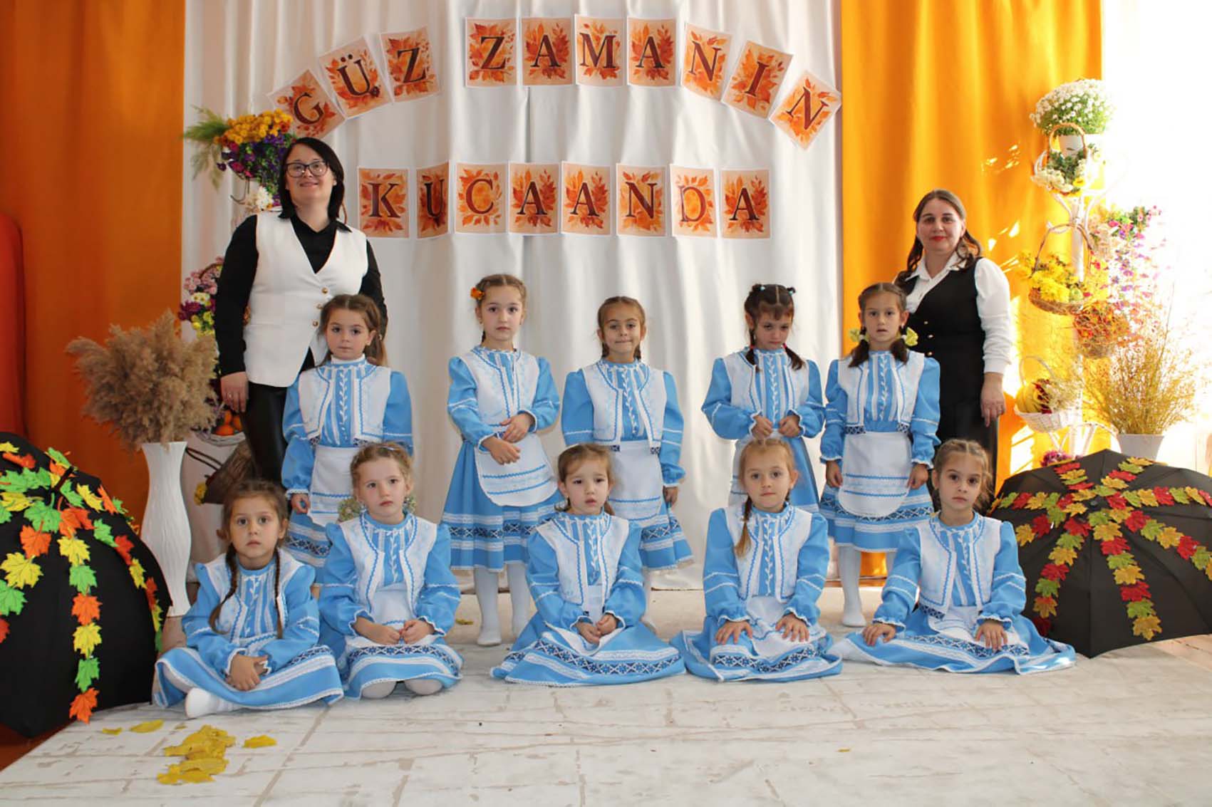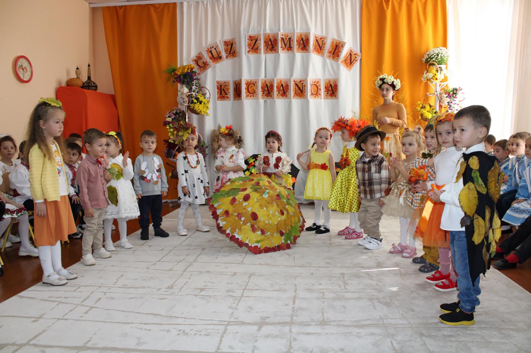 “Güz zamanın kucaanda” yortumuza katıldı bizim en küçük ușacıklarımız, angıları parlak kostümlarınnan moda gösteräbildilär.