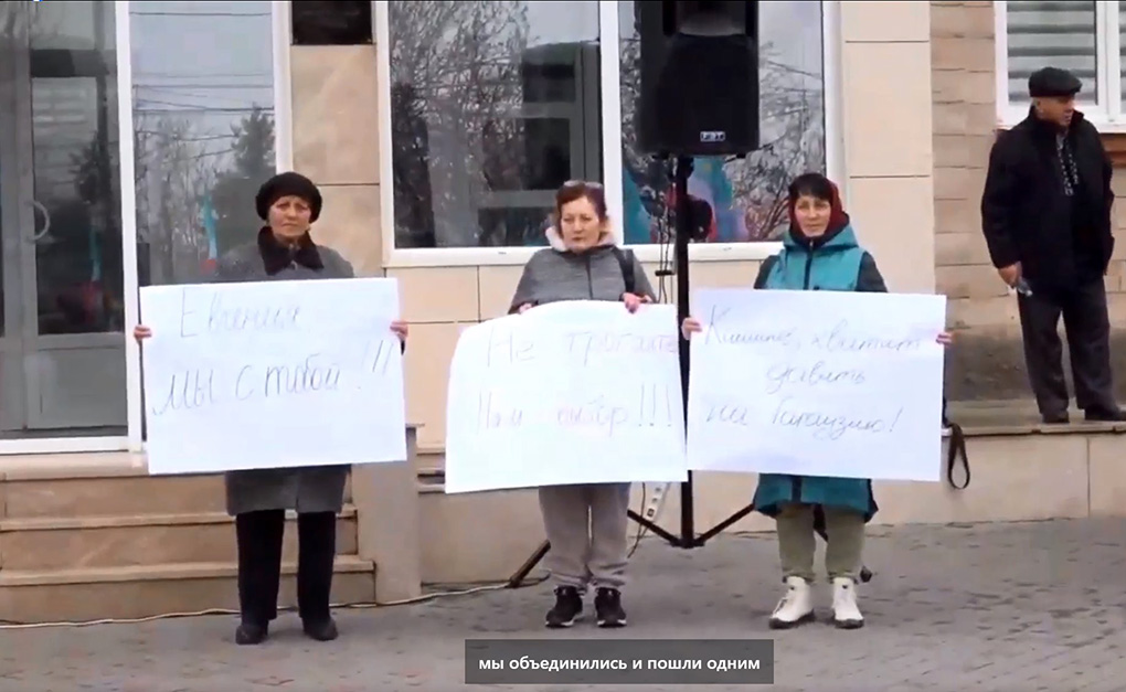 Mitingta transporantlarda yazılı: «Евгения, мы с тобой!», «Кишинев, хватить давить на Гагаузию!»