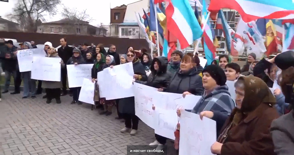 Mitingta Moldova kuvetlerinä karşı lozunglar baarêrlar: “Başkana – serbestlik!”, “Evgeniyä GUȚUL – serbestlik!”, “Maya Sanduyu erä!” h.t.b.