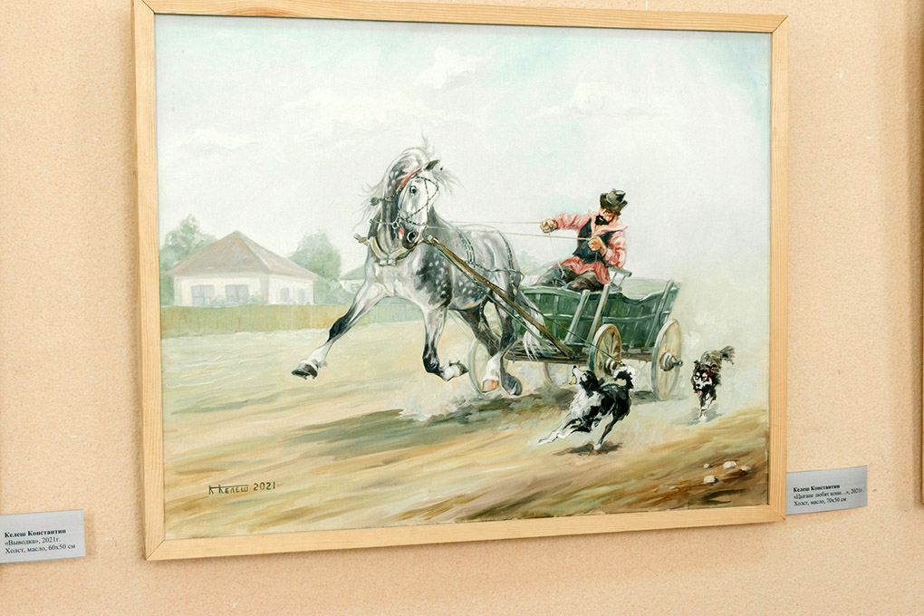 Konstantin KELEŞin “İncäzanaatın hem tabiatın dialogu” adlı sergisindä, Canabisinin yaşlarına görä, sergili 65 resim, angısınnarın taa çoyu, belliki, beygirlerin resimneri, çünkü Konstantin KELEŞ ömür boyunca kendisini beygirlerä hem beygircilää baaşladı.