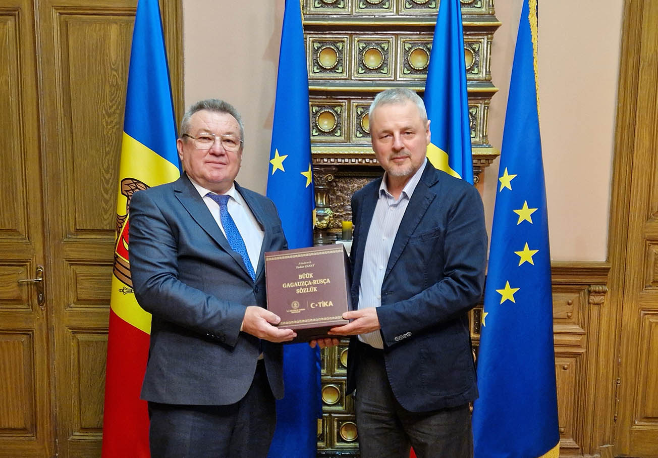 Moldova kultura ministrusunnan görüşmedä Akademik Todur ZANET, TİKA Başkan yardımcısı Dr. Mahmut ÇEVİKin Mihail ÇAKİR adına bibliotekanın yortulu açılış sırasında verilän sözünü erinä getireräk, baaşladı Moldova kultura ministrusuna Sergiu PRODANa TİKA yardımınnan tiparlanan kendisinin hazırladıı 6 tomnuk “Büük Gagauzça-Rusça Sözlük”ü hem şükür etti Sergiu PRODANa Kişinevda Mihail ÇAKİR adına bibliotekanın önündä Mihail ÇAKİRin byustunu koymakta yardımnar için.
