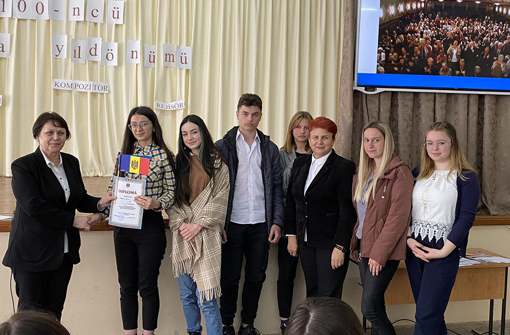“Dionis TANASOGLU – üüredici, yazıcı, kompozitor, rejisör” sırasında Çiçek ayın (aprel) 20-dä lițeydä yapıldı bir “GagauzLogika” intelektual oyunu, ani adandı “Ana dilim – evimdä, canımda, halkımda” yortusuna hem angısında pay aldılar lițeyin 10-12-ci klasların üürencileri. Oyunu hazırladı hem geçirdi gagauz dilindä hem literaturasında üürediciyka Mariya İlyiniçna DUŞKOVA.