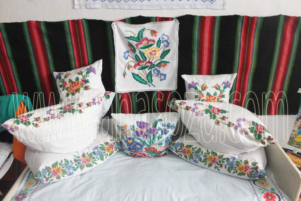 Musey donaklı gözäl, bir eski kırmızı güllü kilimnän, dokulu hem uçları dikili peşkirlärlän hem dorojkalarlan. Erleştirili burada bir pat ta. O pat örtülü ellän dikilmiş çarşaflan. Çarşafın üstündä erleştirili yastıklar. O yastıkların üzleri gagauz ornamentlarınnan donaklı.
