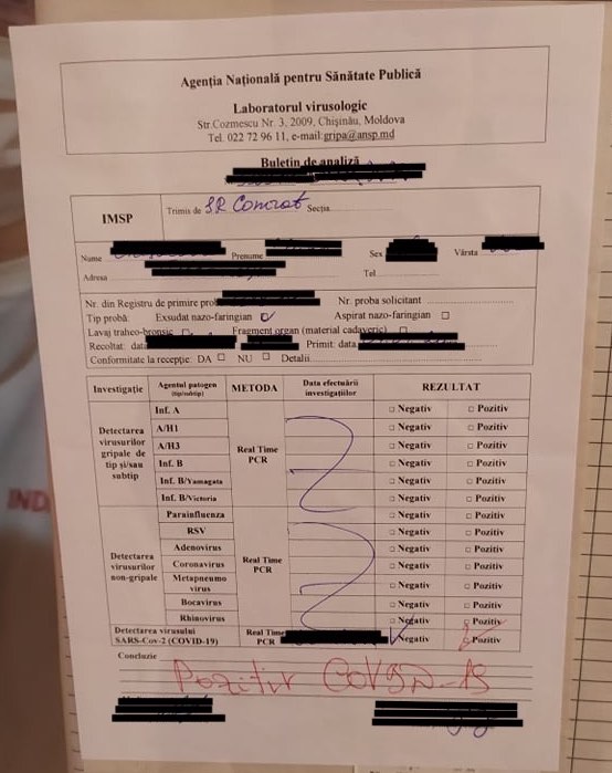Taa sora bu videoyu yapan insan açıkladı nokta.md saytına, ani bolnițaya düştüynän 10 gün beklemiş koronavirusa testın sonuçlarını. Bu 10 gün içindä en şaşılacek iş olmuş, açan Canabisinä bolnițanın personalı, analizleri göstermedään, sölärmişlär ani onnar “pozitiv”. Ama 10 gündän sora, açan insanın elinä geçmiş analizlär listesi, o görmüş hererdä “negativ” (maavi renklän) yazıları, soradan da kırmızıylan “pozitiv” (kırmızı renklän) yazısını.