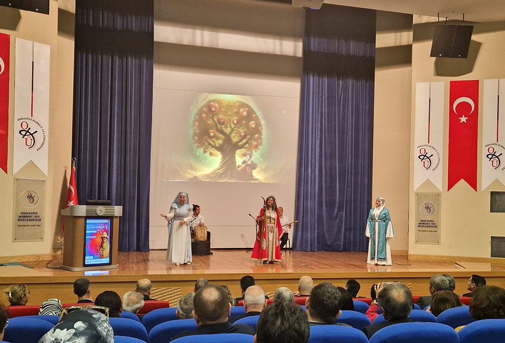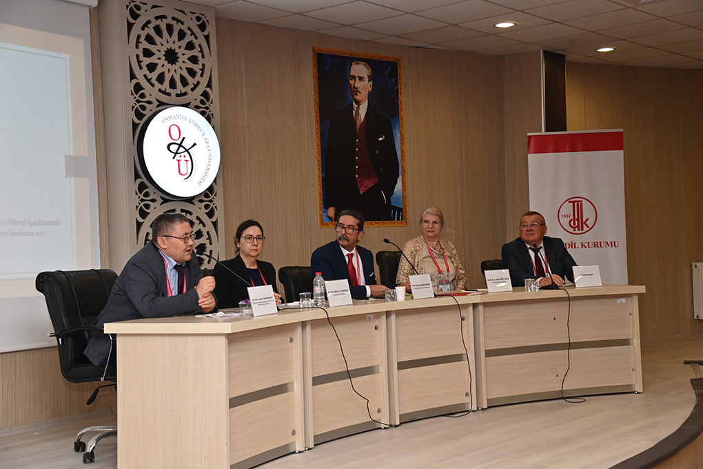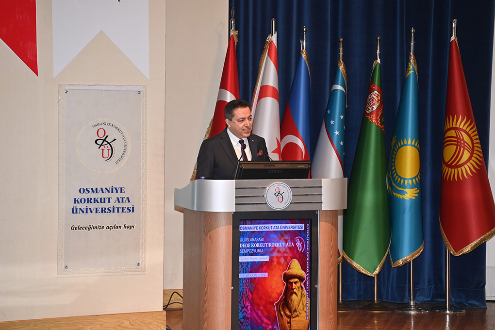 “Dede Korkut/Korkut Ata” Simpoziumun açılış hem kutlama sözlerini tuttular: Osmaniye Korkut Ata Universitetın rektoru Prof. Dr. Turgay UZUN, Manas Universitetın rektoru Prof. Dr. Alpaslan CEYLAN, MHP Genel Başkan Başdanışmanı hem Ahmed Cevad İnstitutun Başkanı Prof. Dr. Ruhi ERSOY, Halklararsı Türk Akademiyası Başkanı Prof. Dr. Şahin MUSTAFAYEV, Atatürk Kultura, Dil hem İstoriya Üüsek kuruluş Başkanı Prof. Dr. Derya ÖRS hem Türk Dil Kurumu Başkanı Prof. Dr. Osman MERT. Bundan sora, programaya görä, Türk muzıka tertipleri sergisi siiredildi hem rektorluk binasının hayatında Korkut Ata byustun açılışı yapıldı.