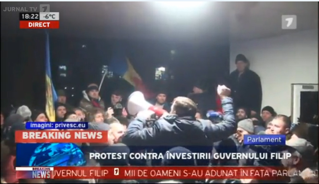 Protestantlar Moldova Parlamentın arka kapusunu kırdılar da yavaş yavaş, poliţiyayı sıkıştırıp, Parlamentın içinä sızêrlar.