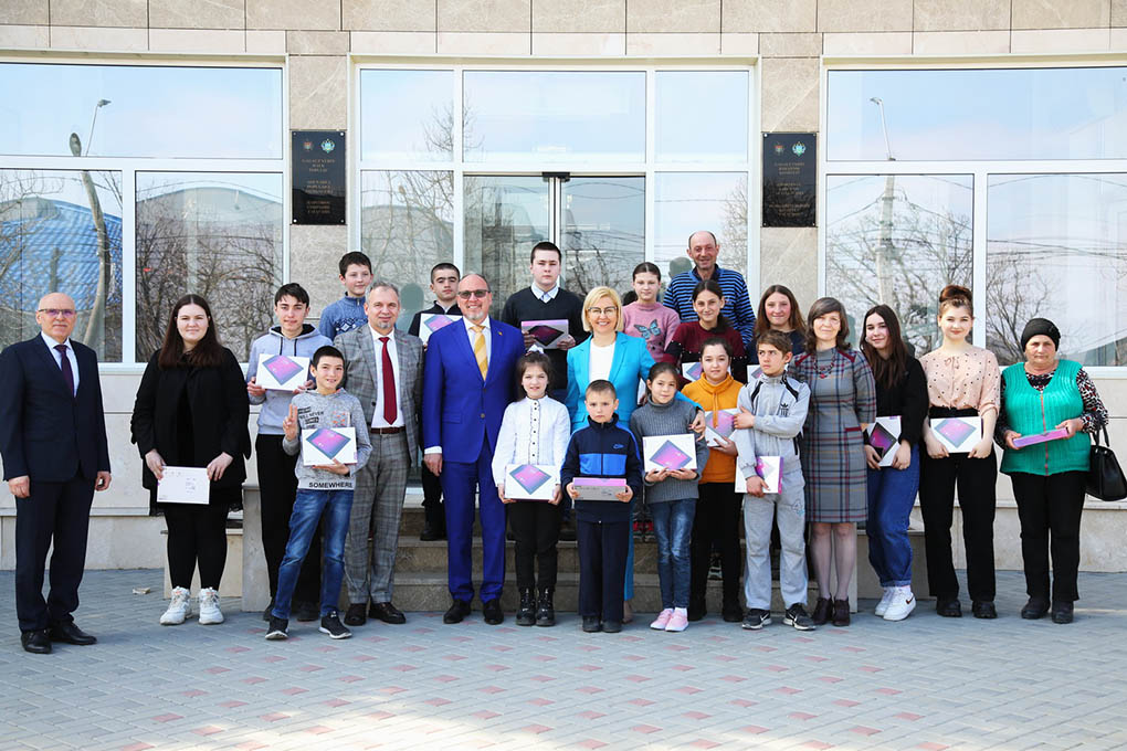 Bundan kaarä Romıniya Büükelçisi Daniel İONİȚA Gagauziyanın yoksul aylelerin uşaklarana, RoAid agenstvosunun aracılıınnan, Romıniyadan 25 planşet vermä sırasına katıldı hem Romıniya yardımınnan yapılan “Mihai Eminesku” romın teoretik lițeyinin binasını gezdi.
