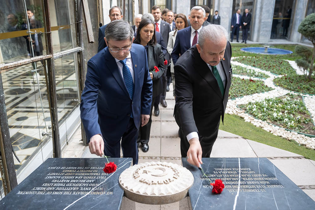 TBMM Başkanı ŞENTOP hem konak Moldova Parlamentın predsedateli, delgațiyalar arası görüşmenin ardından 15 Temmuzda bombalanan alana karanfil braktılar. Taa sora da Mustafa ŞENTOP, o günkü musaafirinä, 15 Temmuz Milli Birlik Günü sergisini hem TBMM Genel Kurul salonunu gezdirdi, bildiriler TBMM presa serviçin açıklamasında.