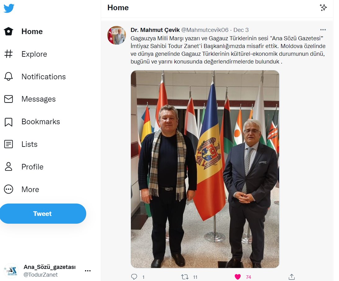 Kırım ayın (dekabri) 2-dä Türk İşbirlii hem Koordinaţiya Agenstvosunun (TİKA) Başkan Yardımcısı Dr. Mahmut ÇEVİK buluştu Gagauz Milli Gimnasının avtorunnan hem “Ana Sözü” gazetasının baş redaktorunnan Todur ZANETlän.