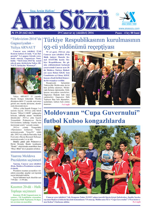 Gazetanın ana temaları: “Türkiye Respublikasının kurulmasının 93-cü yıldönümü reçepţiyası”,“ Kasımın 20-dä – Halk Topluşu seçimneri”, ““Türkvizion-2016”da Gagauziyadan – Yuliya ARNAUT”, “Moldovanın “Cupa Guvernului” futbol Kuboo kongazlılarda”,“ Türkiye Büükelçisinin Gagauziyaya ilk ofiţial vizitı”,“ Çehiya Çöşmä küüyün yakınnarında zihirli pestiţid mezarını inceleyecek”, “KDUda enidän rektor ayıraceklar”, “Azerbaycanın eni Büükelçisi işä başladı”,“ Gagauziya kendi üüredicilerini kutladı”,“ Valkaneşin “Mustafa Kemal ATATÜRK” dolay bolniţasının göz klinikasına TİKAdan yardım”, “Stambulda gagauz kultura festivali oldu”, “Komrat Regional bibliotekasının 70-ci yıldönümü”,“ Bolgradta Gagauz Kultura Günneri geçti”,“ «ИЗ КНИГ П.А. ЧЕБОТАРЯ» kiyadın prezentaţiyası”, “Bolgradta Gagauz Kultura Günneri geçti”, “Can Dalgasında” I-ci gagauz êstrada yarışması” h.t.b.