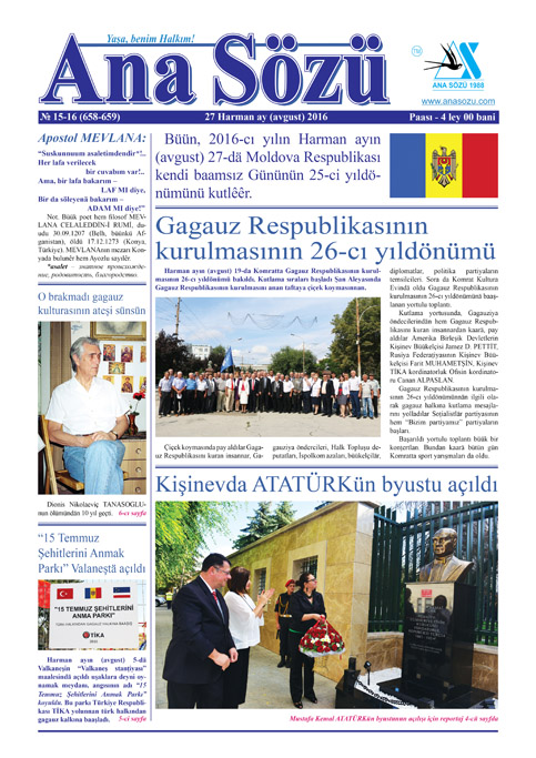 Tipardan çıktı “Ana Sözü” gazetasının 2016-cı yılın Harman ayın (avgust) nomerı