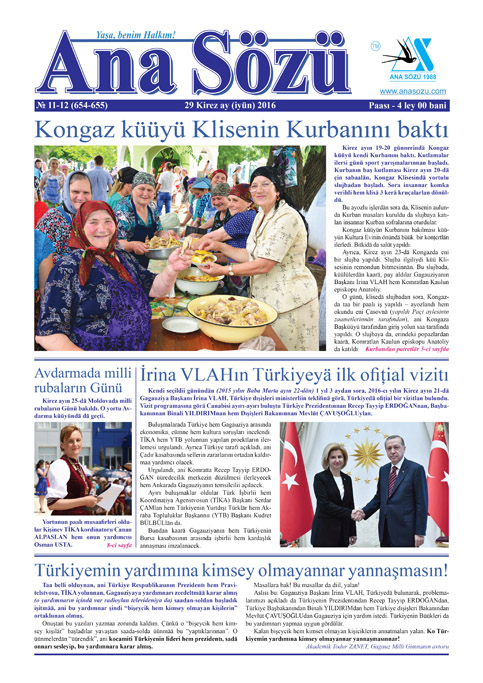 Tipardan çıktı “Ana Sözü” gazetasının 2016-cı yılın Kirez ayın (iyün) nomerı