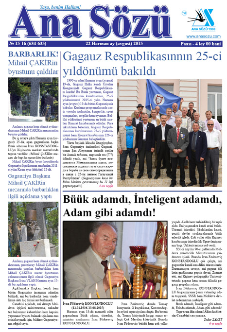 Gazetanın ana temaları: “BARBARLIK! Mihail ÇAKİRin byustunu çaldılar”; “Gagauz Respublikasınnın 25-ci yıldönümü bakıldı”; “Büük adamdı, İnteligent adamdı, Adam gibi adamdı! (Raametli İvan Födoroviç KONSTANDOGLUyu anarak)”; “Yaptıklarını braktı halkına”; “İspolkom 100 gün işi için söz tuttu”, “V. STRELEŢın bizä iki aftada iki vizitı”; “Moldova Premyer-ministrusu hem Türkiye Kişinev Büükelçisi buluştular”; “TİKA proektları detalli incelendilär”; “27 yıl geeri çıktı “Ana Sözü” gazetanın ilk nomeri”; “Komrat kasabası 226-cı yıldönümünü kutladı”; “Çiçeklerin erinä, düünä oyuncak getirin!”; “XX-ci üzyılın 40-cı yıllarında kırılan Gagauzlara REKVİEM”; “Türk dünnäsı resimcilerinä deyni TÜRKSOYdan 18-ci plenêr” h.t.b.