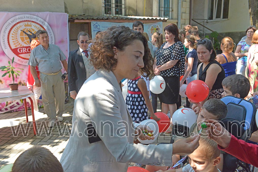 Bu paketların 250 taanesi verildi Kişinev primariyasının “Uşakların haklarını korumak Direkțiyası”na girän kusurlu hem üüsüz uşaklara bakan kuruluşlara. Burada paketleri vermäk sırasında pay aldılar Türkiye Kişinev Büükelçisi Gürol SÖKMENSÜER, Türkiye Kişinev Büükelçiliin diplomatları hem Türkiye “Kızıl Ay” volontörları.