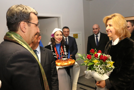 İrina YUSUMBEYLİ: “İsteerim sizä çok saa olun demää, ani geldiniz, zaametinizi saymadınız, bizimnän görüşmeyi kabul ettiniz. Bizim başka başkannarımız da vardı. Onnar da Türkiyeyä sık-sık gelirlärdi, ama bizimnän görüşmää hiç birisi istämedi. İşiniz zor. Ne yardım lääzım, elimizdän gelecek hepsinä hazırız”.