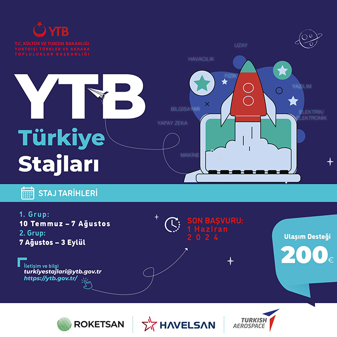 Türkiyenin Yurtdışı Türklär hem Akraba Topluluklar Başkannıı (YTB) açıkladı, ani Türkiyedä YTB yardımınnan injenerlık hem tehnolugiya uurunda staj yapmaa isteyen gençlär için 2 grupa toplanêr.