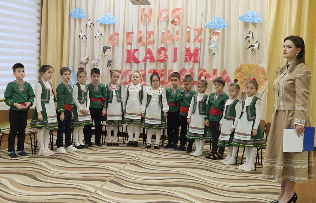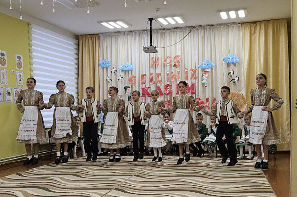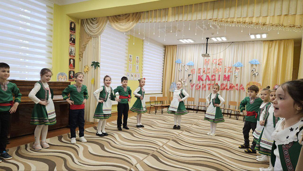 Kasım yortusu günündä Kasım ayın 7-dä bizim uşak başçamızda hazırlık grupasından uşaklar kutladılar Kasım yortusunu. Onnar çaldılar türkü, annattılar peet, oynadılar oyun, yarıştılar. Uşaklar pek beendilär bu sırayı hem ondan pek şen kaldılar.