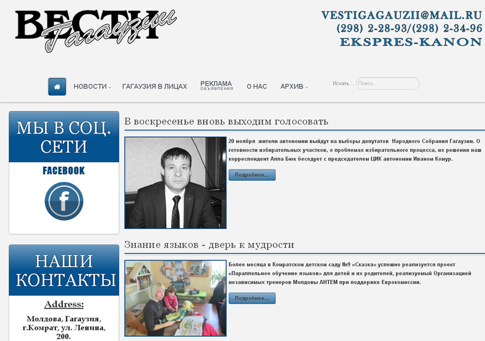 GHT haberlerindän hem zakonnarından kaarä “Vesti Gagauzii” sayfalarında açıklanêr Gagauziyamızın politika, cümne hem kultura yaşaması da.